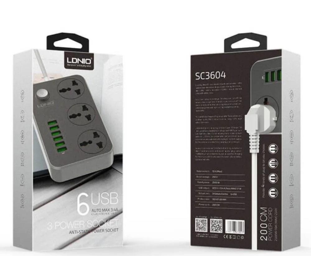توصيلة كهربائية و شاحن للهاتف النقال في نفس الوقت بـ 6 مداخل USB من شركة LDNIO الأمريكية.أنيقة وتصميمها فريد من نوعه،...